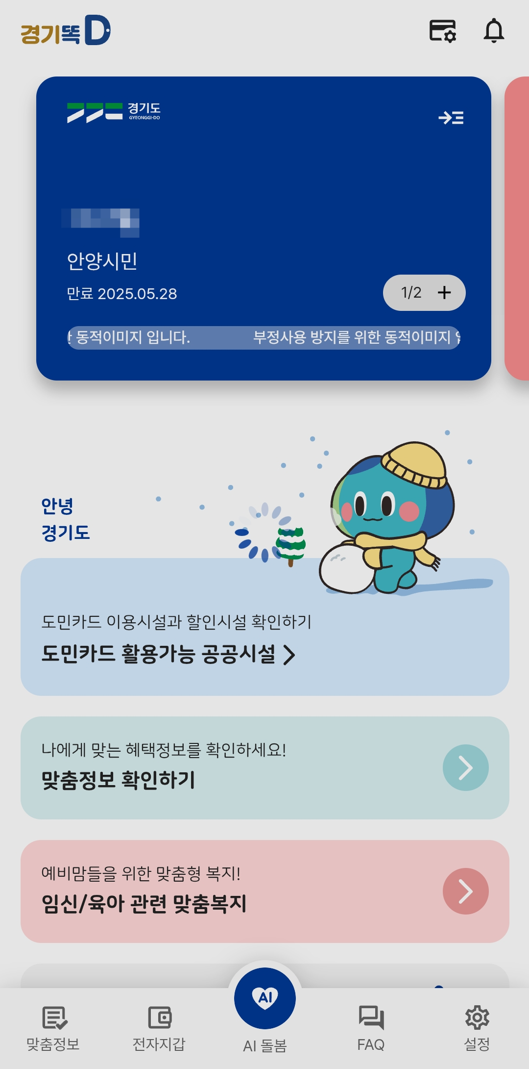 도민카드는 앱에서 모바일 카드 형태로 바로 발급 가능합니다.