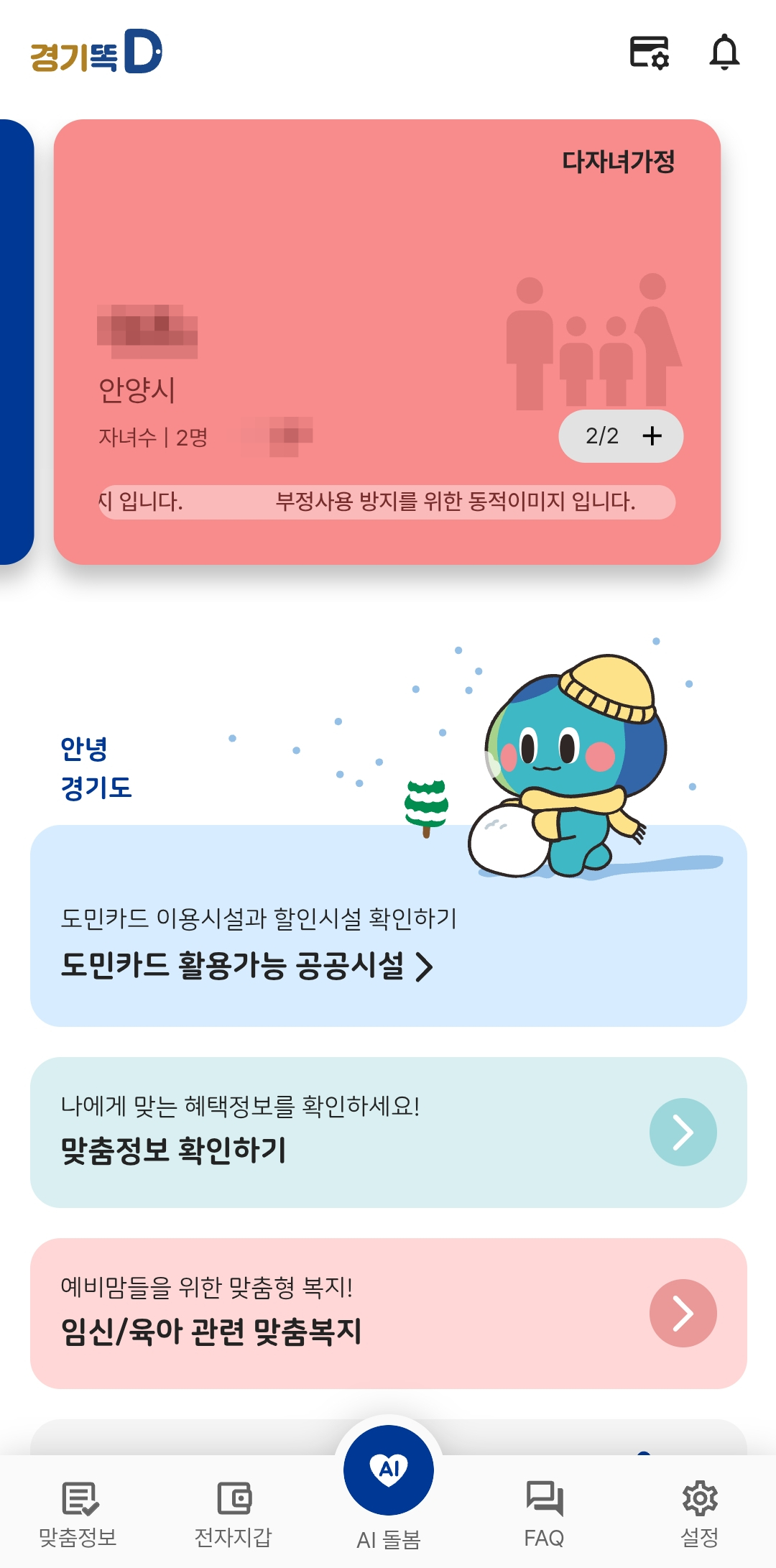 안양시민 카드와 다자녀가정 카드를 쉽게 발급받을 수 있었습니다.