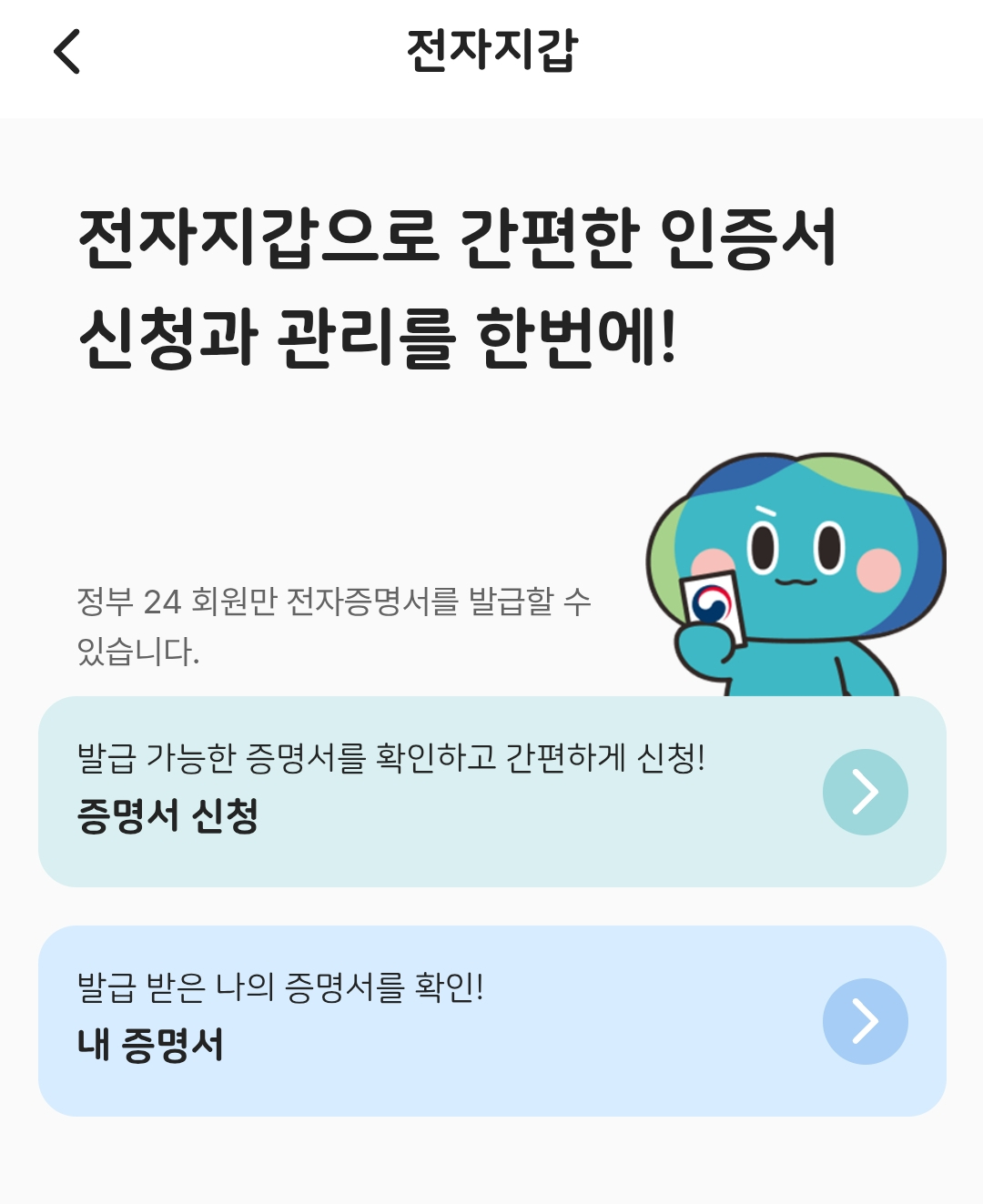 앱 내 전자지갑 기능으로 미리 증명서를 발급받아 둘 수 있어 편리했습니다.